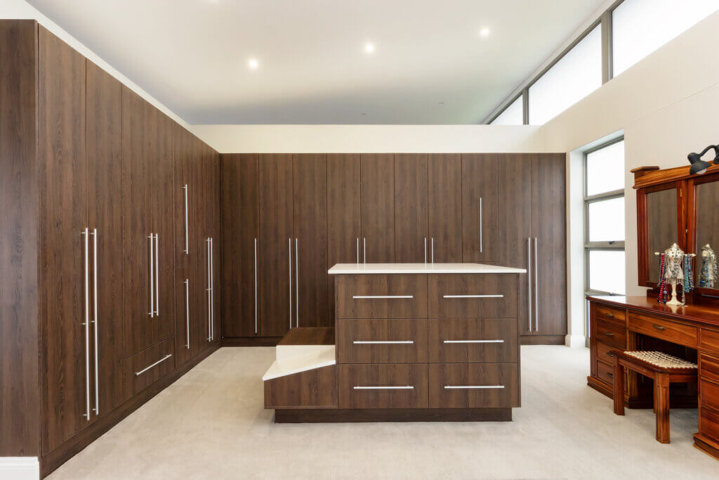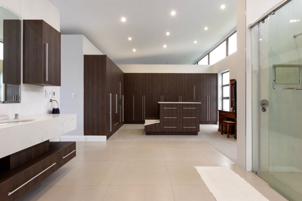 A Walk in Wardrobe/Bathroom area Designed to perfection. This practical design caters for a clients every need.